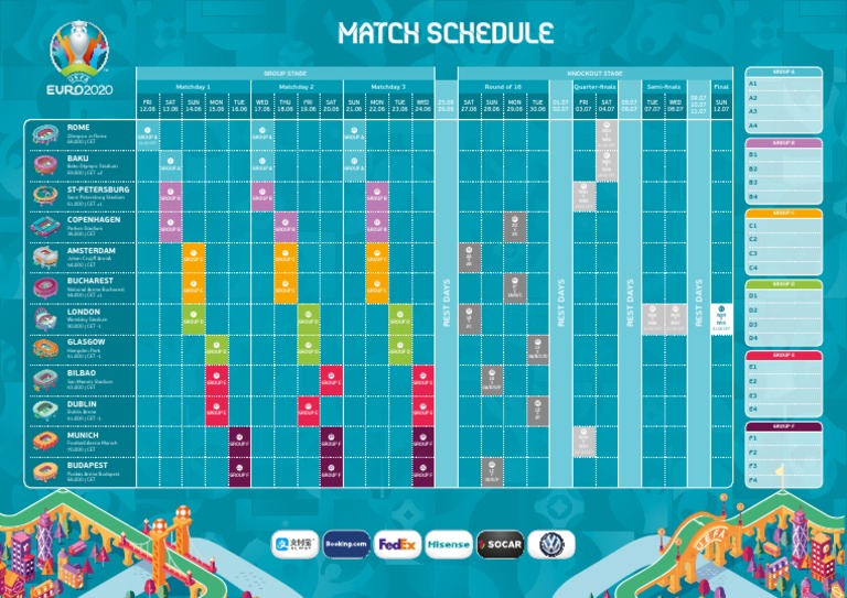 Euro 2020 2021 Final Tournament Schedule Excel Templates